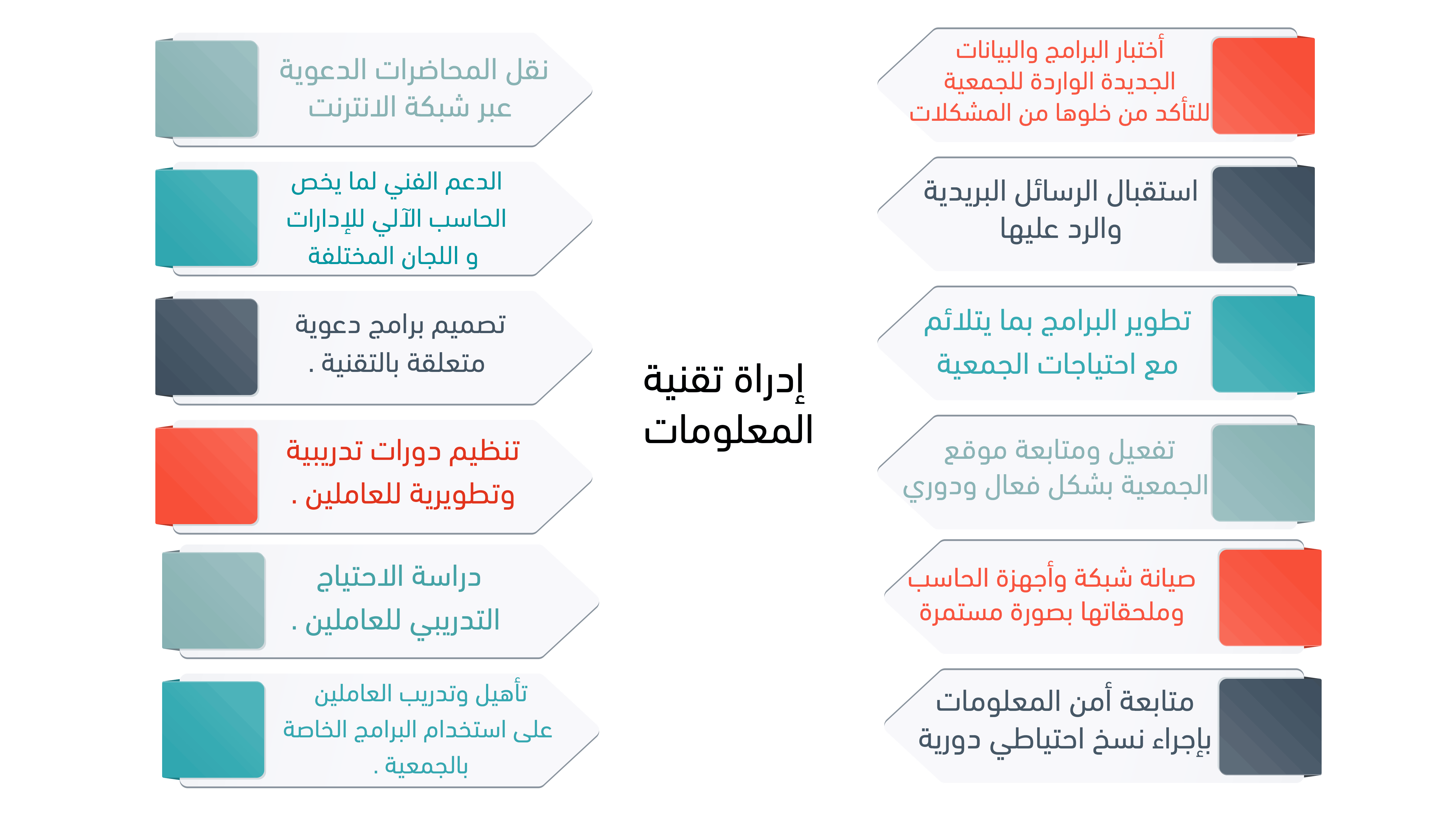 تقديم الدعم التقني لإدارارت الجمعية ، وسرعة توفير المعلومات والبيانات اللازمة لسير أعمال الجمعية وعلاقاتها .