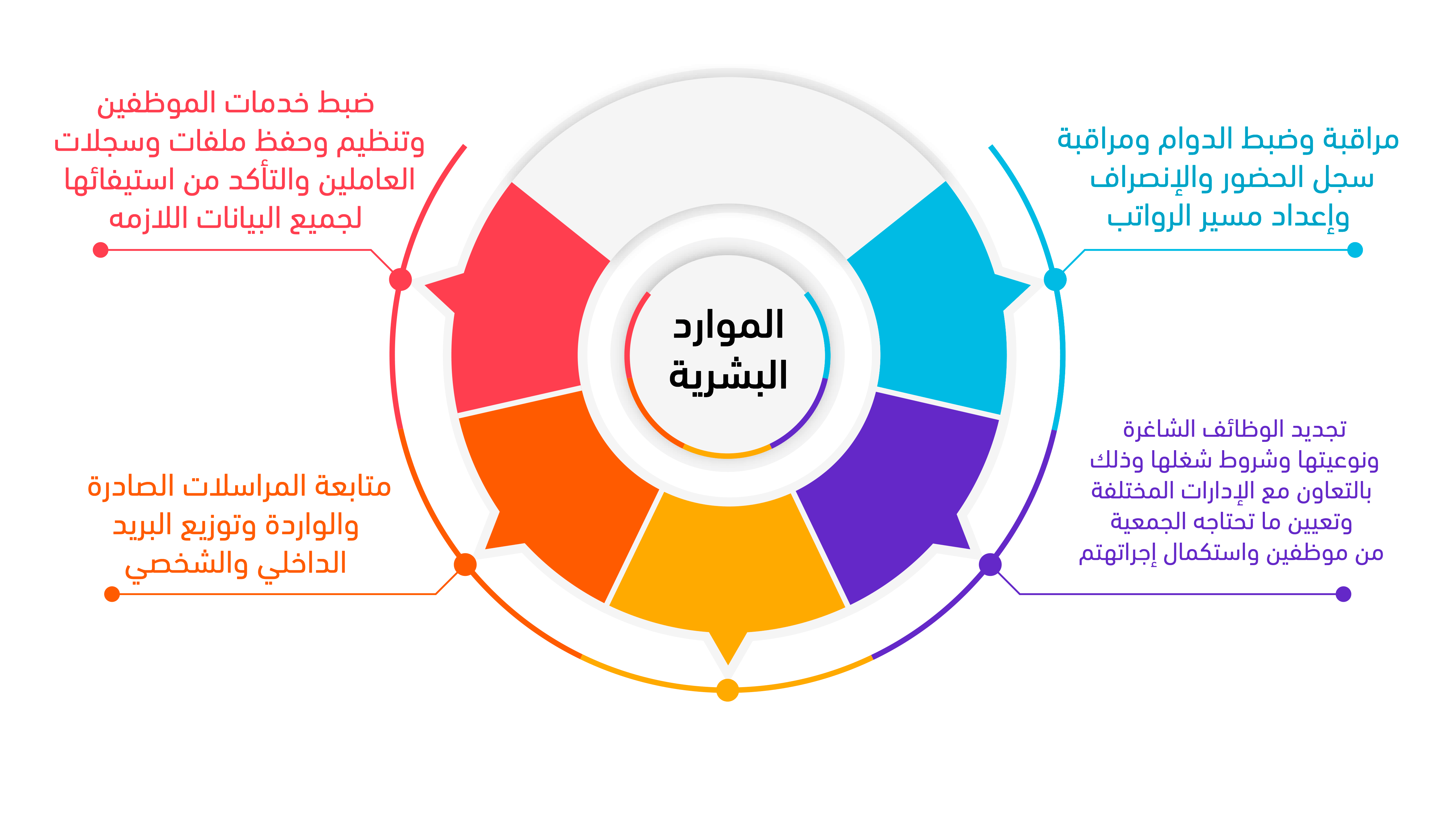 تقديم الدعم الإداري والمالي والخدمات المساندة الإدارات الجمعية وإستقطاع وتنمية العاملين